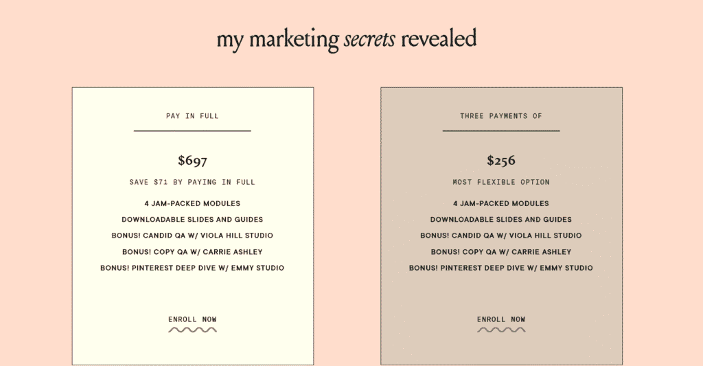 Include a user testimonial summarizing the experience: “I learned how to curate my feed aesthetically but authentically too! I learned how to attract my ideal clients.”