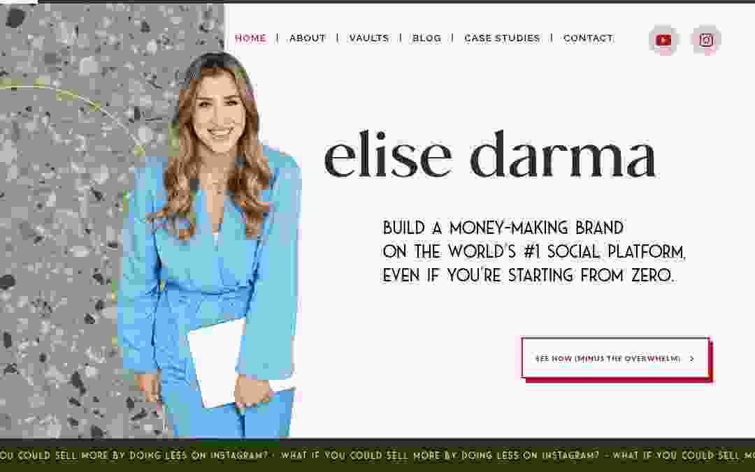 Over the years, Elise has built a strong reputation for delivering results without overwhelming her students. Her courses, including the Elise Darma – One & Done Course, focus on giving people the confidence and structure to show up online in a way that feels authentic and sustainable.